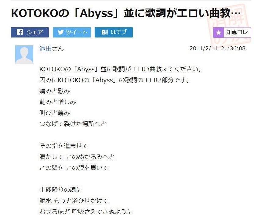 “Recommend songs with lyrics as ‘erotic’ as KOTOKO’s ‘Abyss’.”