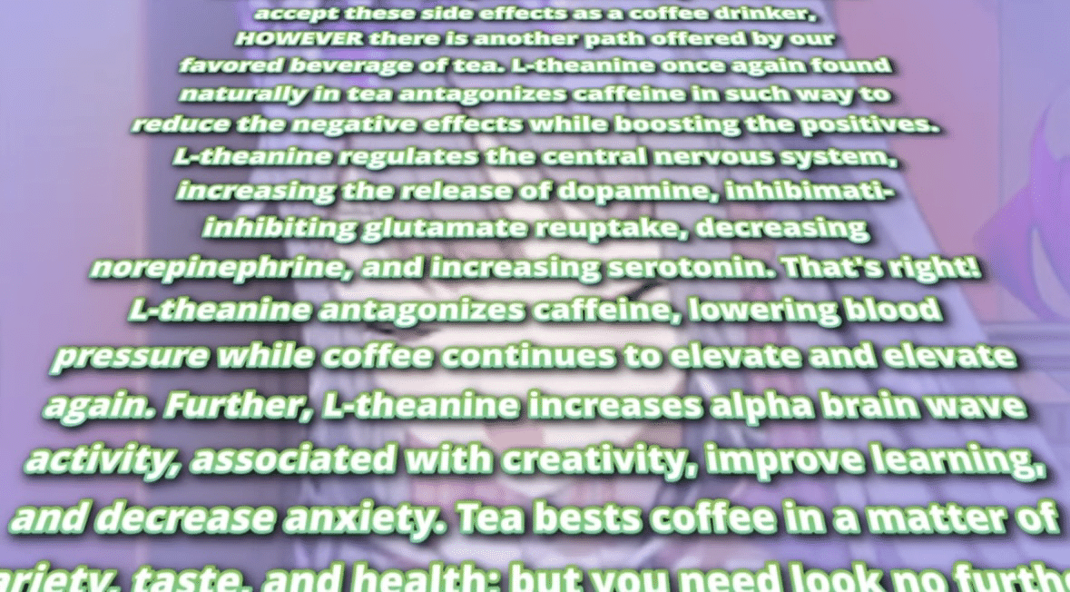 When she once held a debate on coffee vs. tea, she delivered a long, earnest argument praising tea, centered on the amino acid theanine.