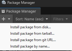 In the Package Manager, Install package from git URL is available from the “+” button at the top left of the window.