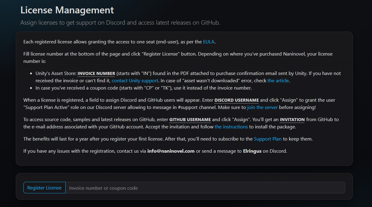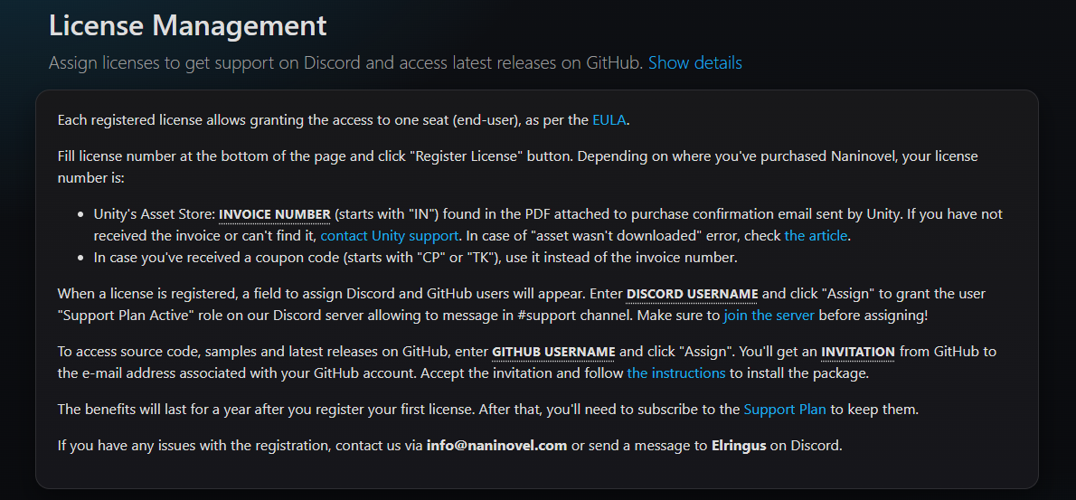 "Discord” authentication is no longer used, and the way you install the core Naninovel package has changed—so it helps only up to a point, and it’s Japanese-only.
