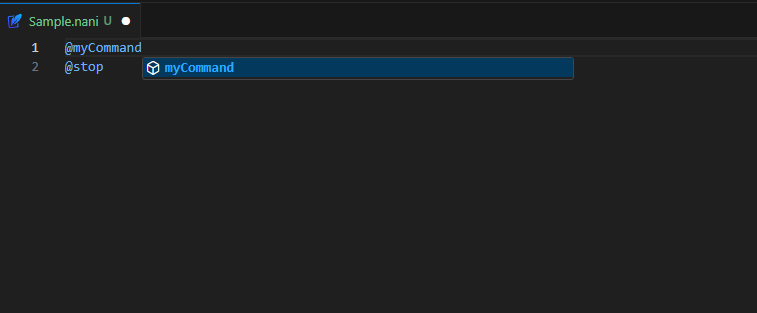 Type @myCommand. If it’s recognized as a Naninovel custom command, your implementation is complete.
