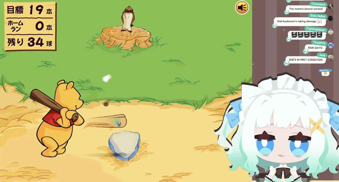 watching Mint Fantome get mad at Tigger’s ridiculous pitches.