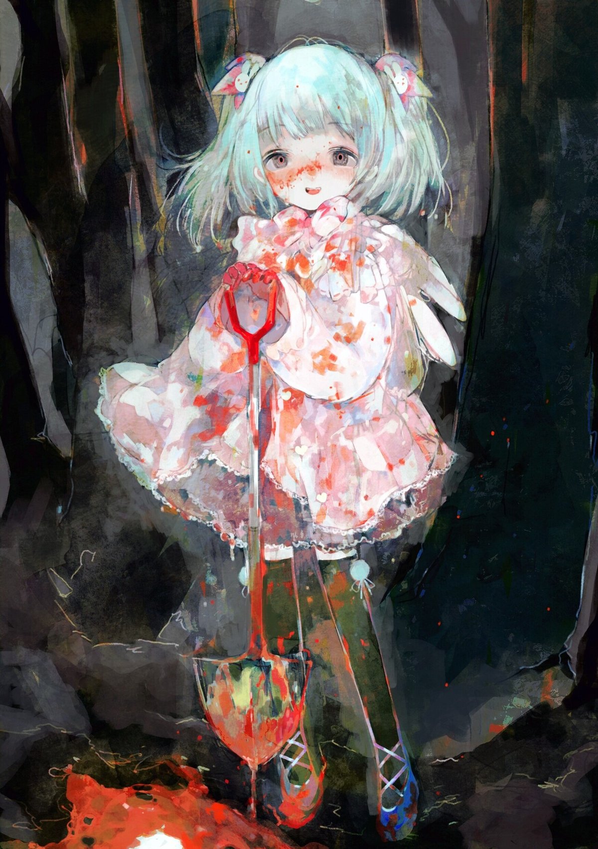 The blood on her white lolita dress caught the moonlight and glinted faintly.