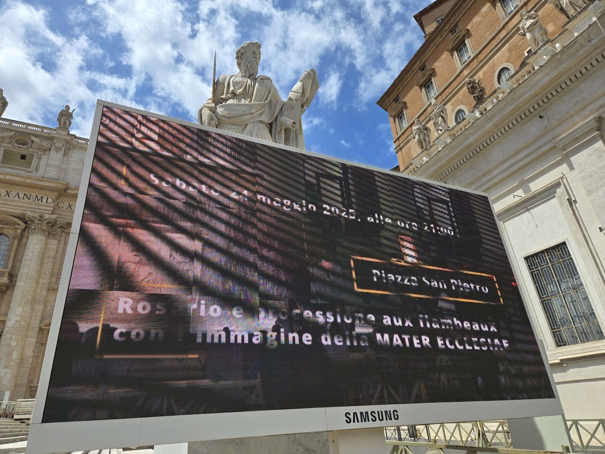 Even the Vatican has digital signage—an electronic board announcing the next Sabbath service.