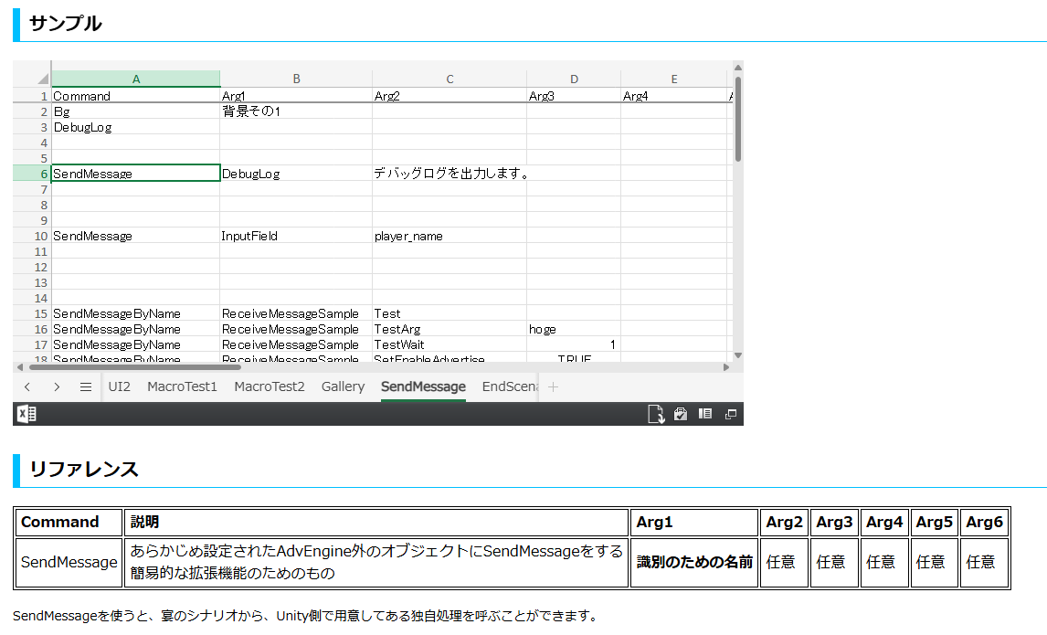 You define messages (Commands) in the spreadsheet and send them during the scenario. On the engine’s receiving side, you branch based on the value of Arg1 and execute the desired process. That’s the basic flow.