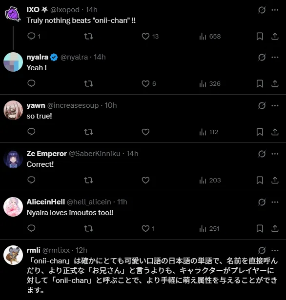 It’s kind of gross — but it’s also kind of sincere. There’s real respect in there. Something about the sound of Japanese — the “chan,” the softness — it hits different for them. They’ve discovered, in their own way, that “Onii-chan” is supreme.