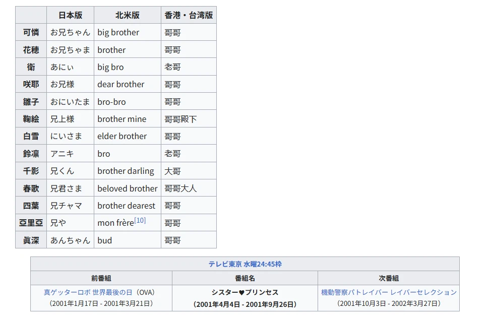 The translators did their best to differentiate the sisters with unique elder brother terms, while the kanji names in Japanese just blur together.